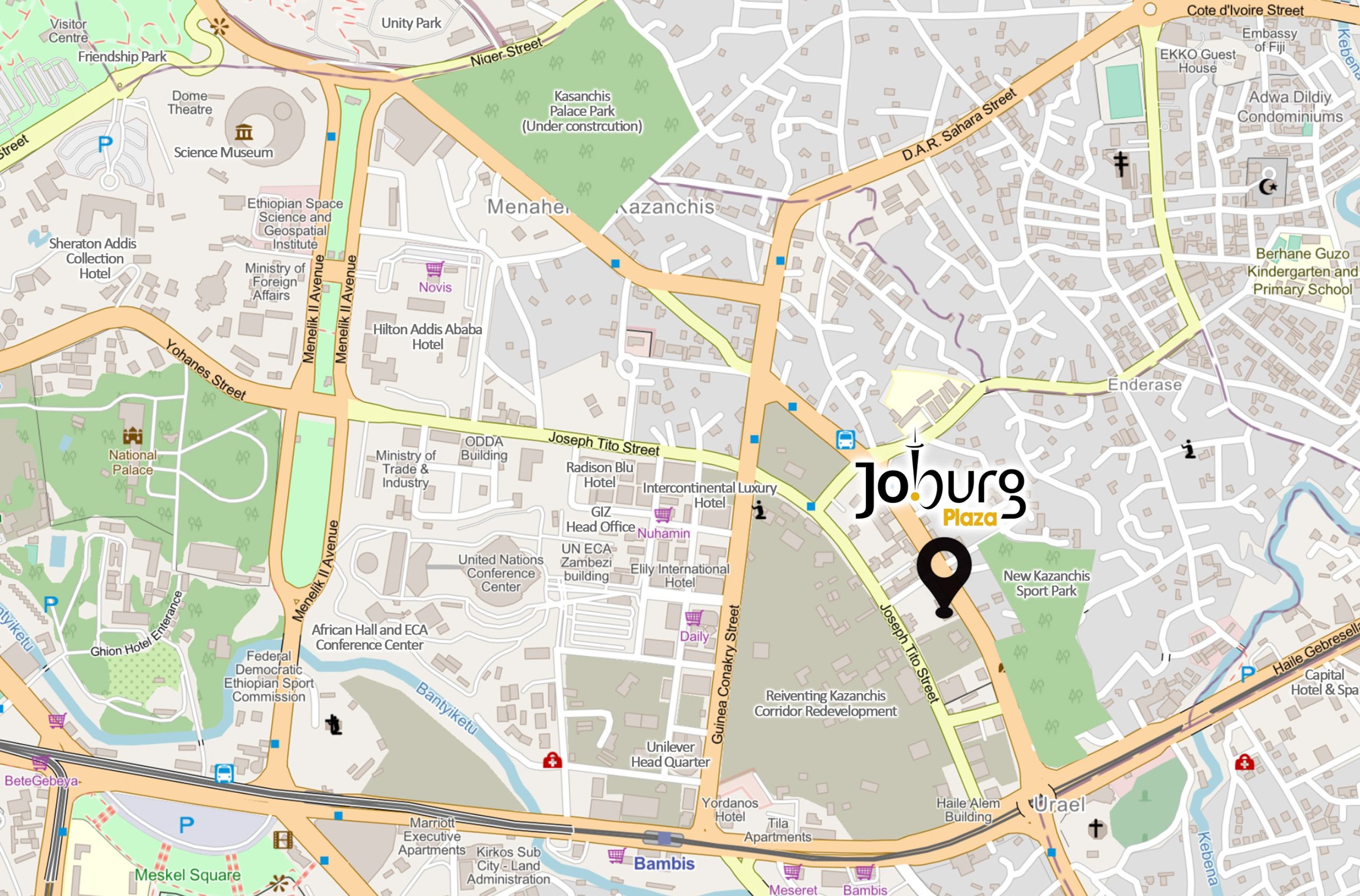 Joburg Plaza is a premier G+13 mixed use building located in Kazanchis, Addis Ababa. Designed for those who seek the perfect balance of luxury and convenience, the building features four floors of basement parking and distinct zones for commercial and residential use.